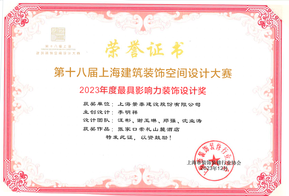• 2023年度上海市建築裝(zhuāng)飾優秀品牌選勵企業