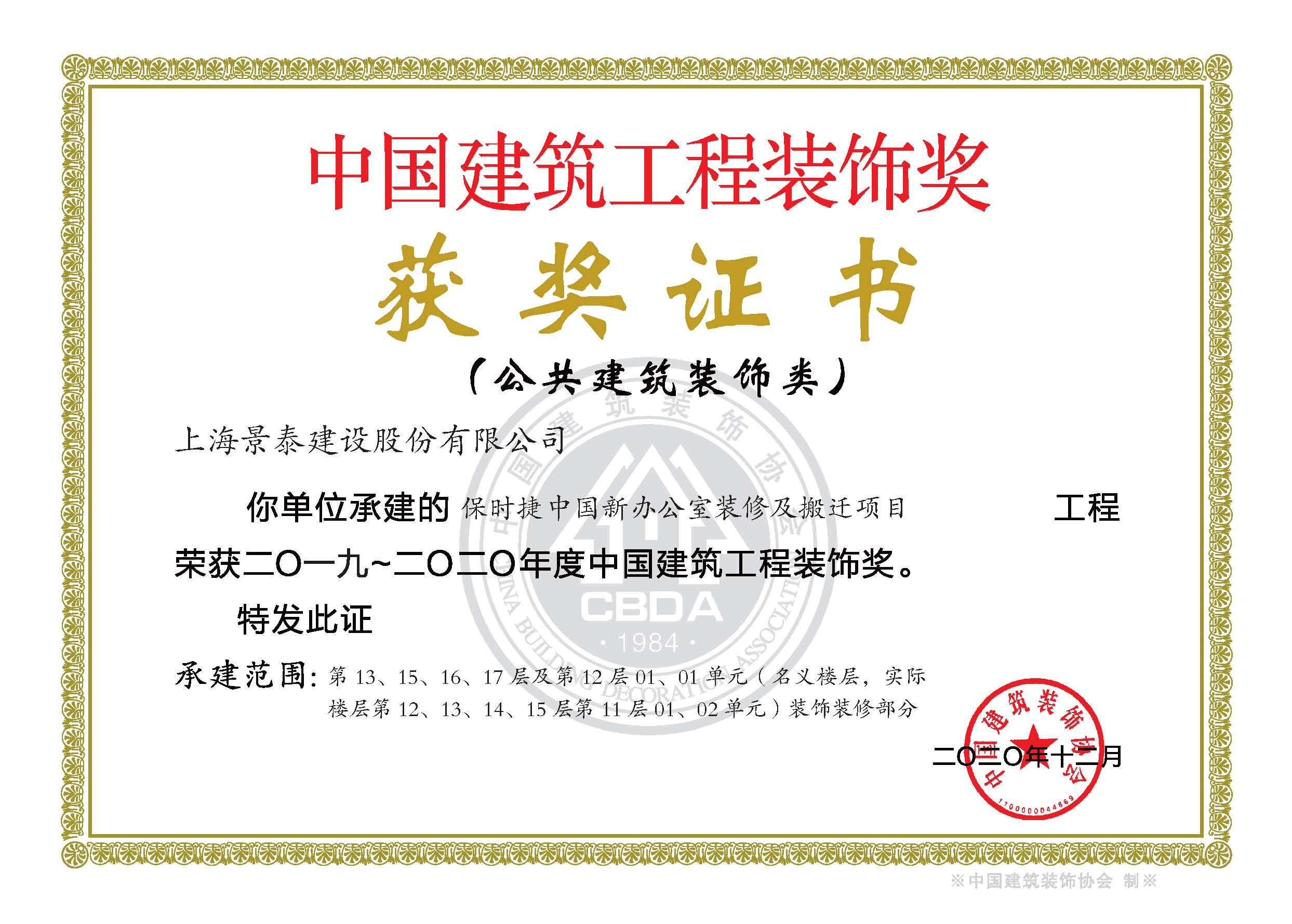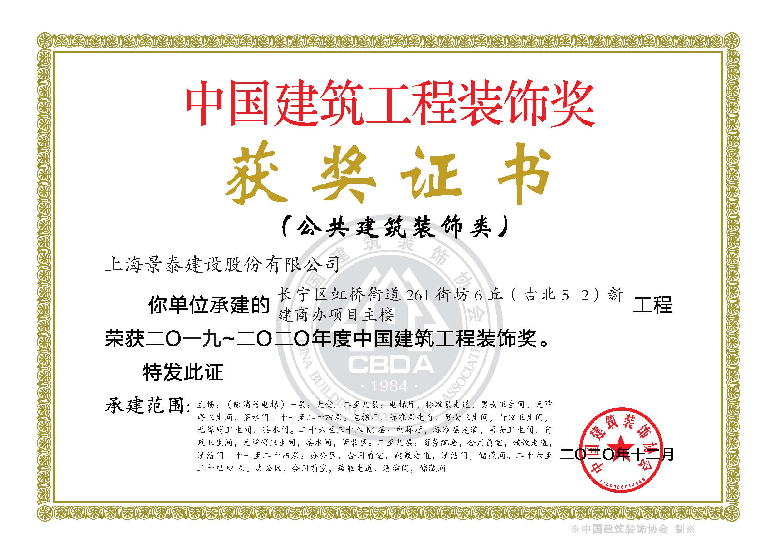• 2019-2020上海市建築裝(zhuāng)飾工(gōng)程優秀項目(古北項目)